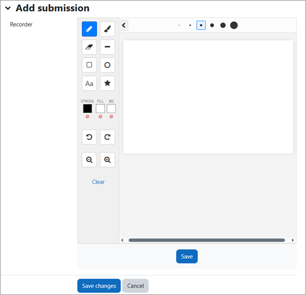 In addition to the audio and video recorders, as of version 1.0.43 (Build 2026021901), there is also a whiteboard submission option.