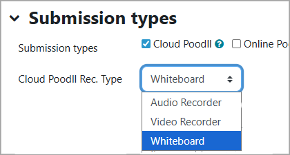 There are just two configurable options for the whiteboard in the cloud Poodll assignment submission instance settings.
