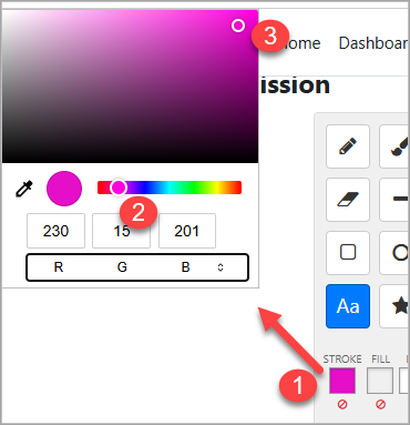 • Stroke - pen, font, stamp and shape border color